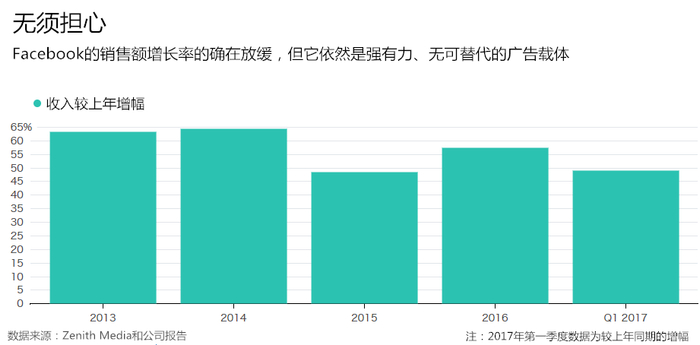 没错,Facebook曾经预警称,公司2017年的收入增幅会“显著”放缓,因为它无法在不赶走用户的情况下保持News Feed业务广告投放量的增长。