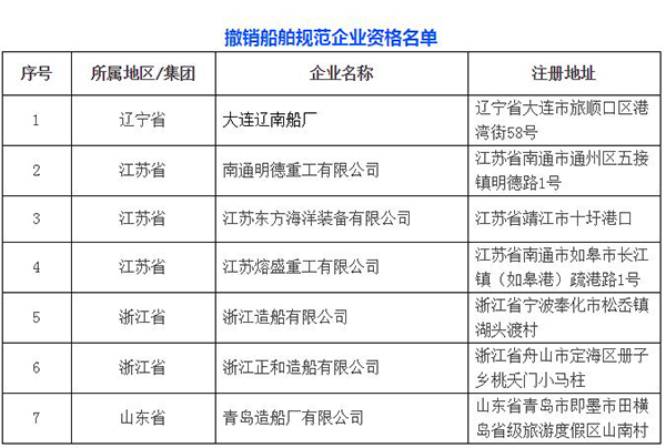 5月13日,发自工信部的消息称,有7家企业被撤销船舶规范企业资格。
