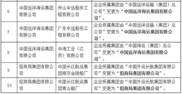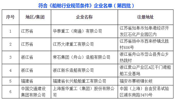 工信部同时公布了10家船舶规范企业变更公告信息、6家符合《船舶行业规范条件》企业名单。