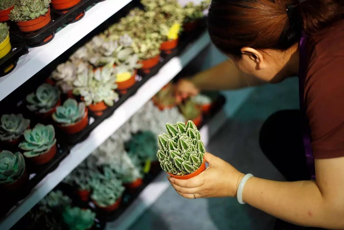 ▲ 多肉植物盆栽以憨态萌宠的造型和亲民的价格异军突起,特别受到年轻人喜爱。