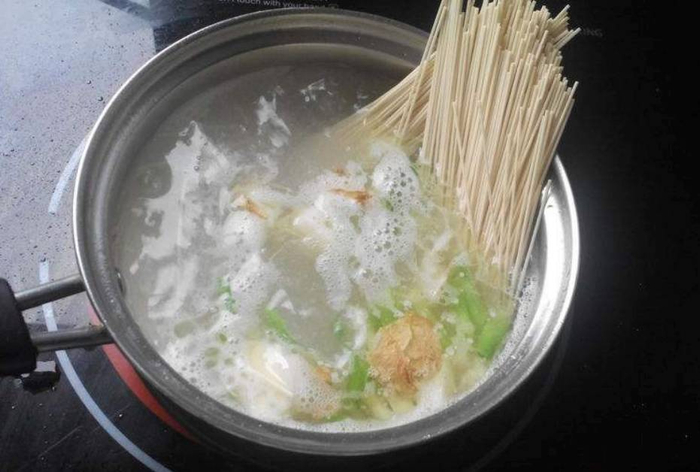 3、煮面条:冒气泡就下面大多人习惯先把水烧开了,再放挂面。其实,当看到锅底有小气泡飘上来的时候,就可以把面下锅了。这样煮出来的面劲道、不粘。