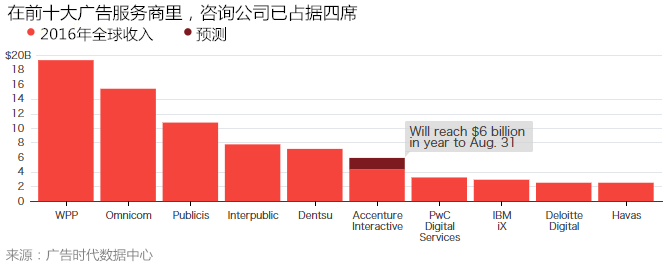 2016年收入状况:咨询公司排在数字广告机构的前列