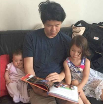 爸爸叫Jerry Zhang,来自中国,是一位律师。他还有两个可爱的女儿,大女儿四岁,小女儿一岁。