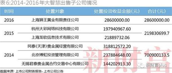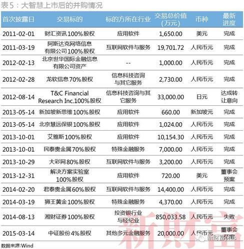 从被收购企业的类型来看,除了与大 智慧自身主营相关的金融软件开发公司,试图通过收购海外金融信息公司布局海外市场股票行情外,还涉及互联网彩票、贵金属期货交易等业务。