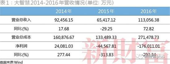 赶在2016年年报披露截止日期前,4月28日,*ST大 智慧公布了全年业绩:净利润亏损幅度扩大到-17.60亿元,亏损规模是2015年的近4倍(表1)。