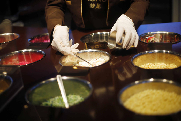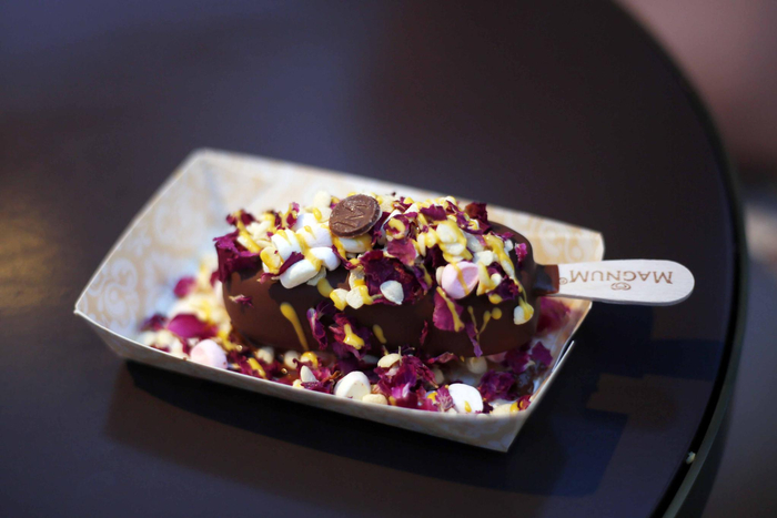 ▲在梦龙体验店里,雪糕不再是便利店或者街边杂货铺冰柜里那样,包着廉价塑料纸袋。在这里,顾客能够亲自挑选巧克力并现场制作雪糕的脆层,最后再撒上各类水果干和坚果碎。