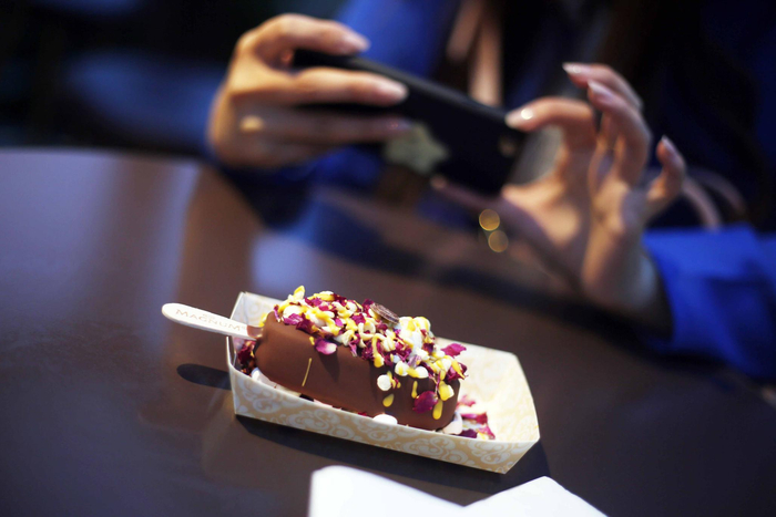 ▲顾客拿到DIY的雪糕,第一件事就是拍照分享到社交平台。