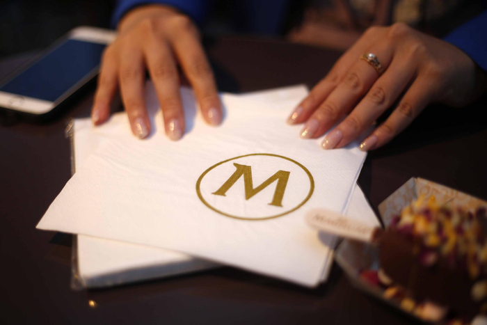 ▲供顾客擦拭的纸巾上印有金灿灿的梦龙商标。
