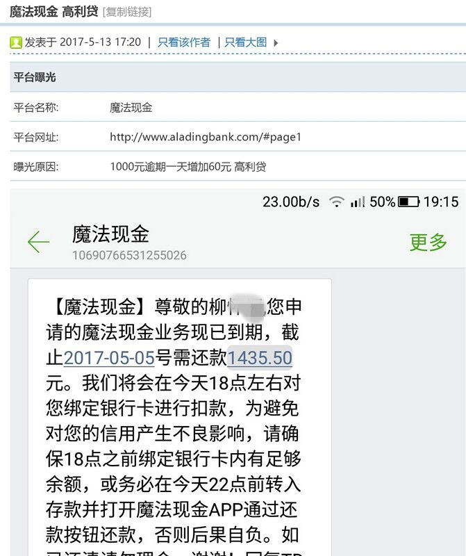 5月13日,有网友发帖表示,“魔法现金高利贷”。