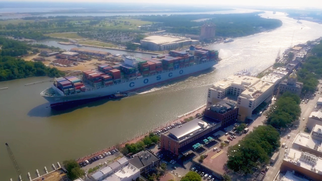 5月11日,一艘中国货轮抵达美国东部海岸的萨凡纳港口,它的到来甚至让整座城市都变得渺小起来。