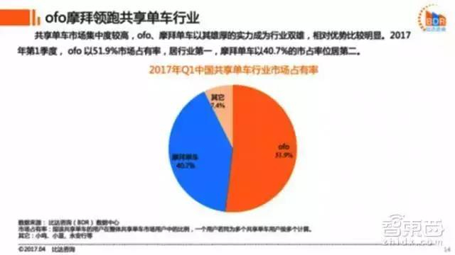 近日,前文提及的比达咨询又发布了《2017年Q1中国共享单车市场研究报告》,该机构的这份新报告显示,2017年第一季度,ofo的市场占有率为51.9%,而摩拜单车则为40.7%。