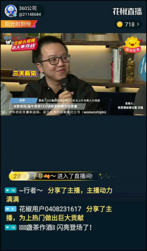 在谈及网络安全时,孙晓骏通过花椒直播向广大用户讲述了网络安全防护的重要性。他指出,勒索病毒只是威胁网络安全众多网络病毒中的一种,,防止勒索病毒入侵,维护网络安全要有足够的安全防护意识,软硬件结合,安装必要的安全软件定期检测电脑安全环境,及时修复系统漏洞。孙晓骏表示,“360安全卫士拥有5亿用户,此次勒索病毒爆发,虽然仍有20万用户没有针对病毒打补丁,但同样避免了病毒入侵,5亿用户零感染。这足以说明日常防护的重要性。”