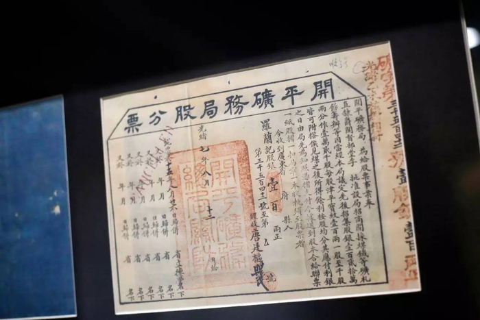 ▼ 光绪七年(1881年)发行的开平矿务局股票,是存世最早的中国股票。