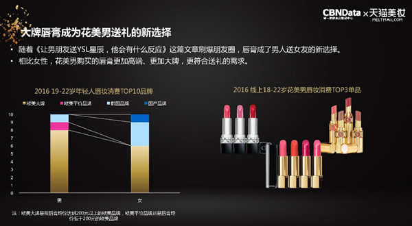 这个“5·20”你表白了吗?数据显示,年轻男性越来越喜欢将高端品牌唇膏作为礼物。
