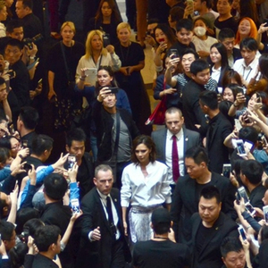 5月16日,上海的来福士广场中庭人群聚集,保安严阵以待。下午两点钟刚过,人头攒动,维多利亚·贝克汉姆穿过出现在中庭搭建的展台上。这一次,是为她的合作彩妆系列站台。