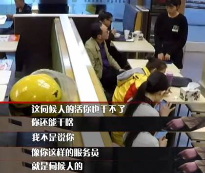 餐厅里,一位年轻的女服务员在擦桌子时不小心打翻水杯,弄湿了一位男顾客的裤子,女服务员连忙道歉。不料,男顾客一下火大起来,开始责骂服务员,“我拿这个泼你身上,我再给你倒个歉行不?”