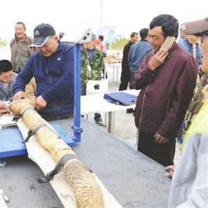 据了解,此次比赛设立奇特苁蓉、苁蓉之最、锁阳之最、十佳苁蓉、肉苁蓉王5个评比项目。记者在现场看到,每根肉苁蓉上都贴着一张红纸,说明肉苁蓉的长度、重量和胸径。工作人员忙着为参赛苁蓉称重计量,来宾纷纷掏出手机拍照。“肉苁蓉王”的评比最为激烈,经过评审团和现场观众投票,该苏木阿拉腾嘎查牧民敖登的肉苁蓉夺得“肉苁蓉王”桂冠。