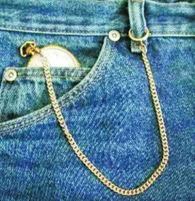 后来,怀表慢慢淡出人们的视线,牛仔裤也从工作装备变成了日常着装,这个口袋最初的设计逐渐被人们忘记。不过,这个小口袋并没有消失,人们不断开发它的新用途:放置零钱、打火机、钥匙等需要随身携带的小件物品。这个口袋不但方便易用,而且时尚美观,所以,即便不再用它来装表,这个精巧的设计还是一直保留了下来。