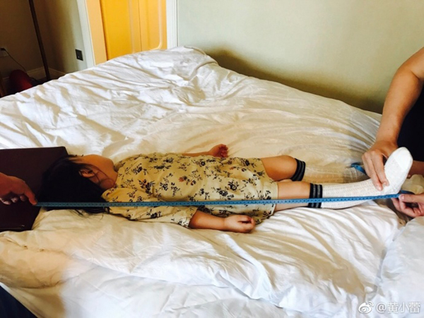 5月24日下午5点07分,黄小蕾又发微博称,在女儿熟睡时,她找到迪士尼酒店的工作人员现场做证测量女儿身高,并发布女儿在不穿鞋子的情况下,测量身高的照片,称其女儿净身高已经达到98厘米,达到了票根上标注的97厘米标准。