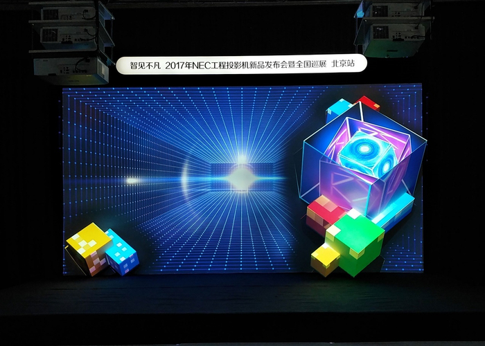 本次发布会NEC打造了“3DMapping舞台秀”,主舞台采用5台NEC全新液晶高清工程投影机融合呈现。新品所搭载的全新色彩管理平台,令色彩表现更加惊艳、细节表现更加完美,实现了精妙绝伦的视觉盛宴。