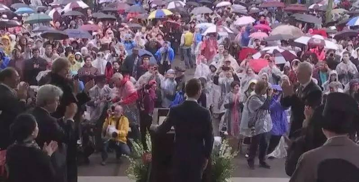(演讲结束时,冒雨观看的各位都起身鼓掌)