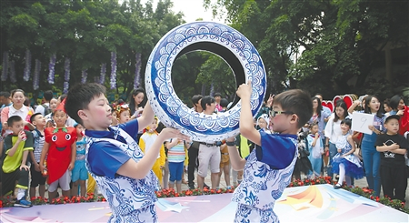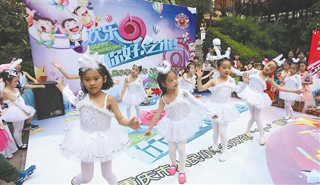 重庆商报讯 上千个易拉罐搭建的过山车、彩绘轮胎、自编节目走秀……昨日上午,人民小学“六一嘉年华”上演,除了各种老游戏让孩子们玩得过瘾,还有各种秀场让孩子们秀出了自己的精彩,留下美好瞬间。
