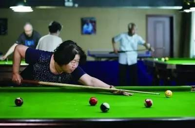 ▲ 养护中心的老人们在娱乐健身方面不逊于年轻人,台球也玩得很溜儿。