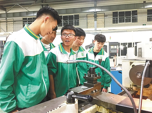 宁夏职业技术学院的学生认真开展零件生产实训。