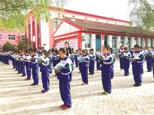 隆德县张程乡中心小学的学生们在进行早读。