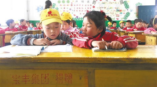 宁夏固原市原州区三营镇甘沟小学学生正在上语文课。