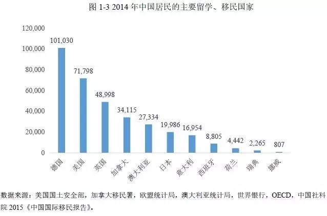 与此同时,海外移民数据也呈现相似的特点。根据统计,中国居民的主要移民国家是德国、美国、英国和加拿大。其次是日本、澳大利亚、意大利和西班牙。十年前,中国的富裕家庭把孩子送往美国、加拿大、英国、德国留学,之后,美国、英国、加拿大和德国等逐渐成为热门的移民国家。从最新的留学数据来看,未来三年,美国、加拿大和英国仍然将是移民最热门的国家。
