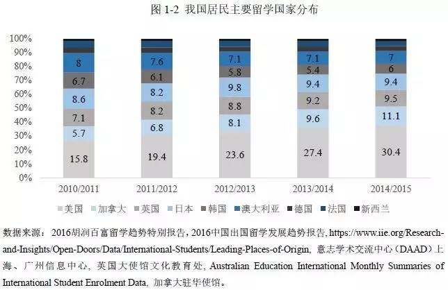 最近五年来,随着越来越多的国内居民选择海外教育,。从2010年至2015年,前往美国的留学人口从15.8万增长到30.4万,五年翻了一倍。前往加拿大的留学生规模从5.7万增长到11.1万,增幅95%;其他前往英国、德国、日本和新西兰的留学生也分别有10%至60%的增幅,只有法国、韩国和澳大利亚的留学生规模呈现平稳甚至下降趋势。这和当地的移民政策和对外籍人士投资地产的税收歧视政策有密切关系。以澳大利亚为例,2017年4月18日,继澳大利亚政府宣布正式取消澳洲移民457工作签证后,4月20日,再次宣布提高外国人加入澳大利亚国籍的准入门槛,如提高英语考试难度、限制入籍考试次数、要求申请人证明融入澳洲社会的方式并将外国人最短居住期限从1年增加到4年。这使得海外人士移民澳大利亚的几率下降;法国在住房销售增值税方面对外籍人士采取歧视政策,非欧盟居民在出售住宅的时候,必须课以33%的高额税收,比当地居民高出68.3%。