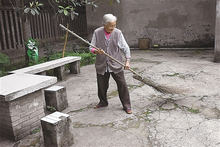 九旬老太义务扫院坝30年 邻居当她是亲人