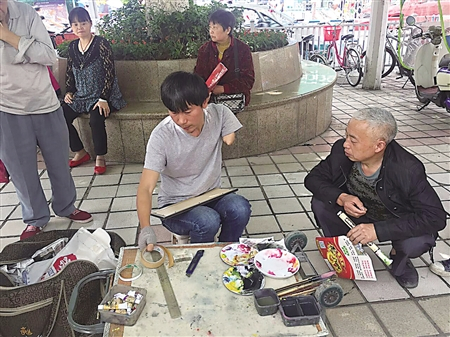 从2004年到2011年,长达7年时间的苦练,张启辉终于开始摆摊卖画。他第一次卖画是在沙坪坝区三峡广场,当天就有人花了200元钱买走了他的4幅画。