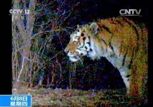 这段6秒钟的影像,是今年5月1日凌晨1点左右,在黑龙江省森工东京城林业局林区内拍摄到的。当时,这只体态健硕的野生东北虎,发现相机后看了一眼镜头,随后便警惕地离开了。