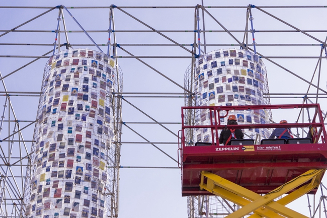都曾经在某些地方被禁过。在德国卡塞尔市中心弗里德里希广场,这些经典著作以各种语言各种版本出现,被塑料纸包着,悬挂在巨型钢架上,以近十万本的浩海数字搭建出一座“帕特农神庙”。