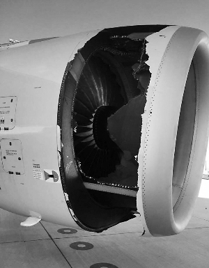 爱飞行航空俱乐部董事长、资深机长陈建国分析称,综合各个方面的信息来看,发生故障的位置在发动机进气道,而不是在风扇转子的周围,因此可以基本排除风扇叶片损坏的可能。从这个角度来看,很有可能是因为进气道使用了复合材料,而这些复合材料可能发生了问题进而导致发动机进气道塌陷或破损,破损的材料被强大的气流吸入发动机,打伤涡轮叶片引发发动机故障。
