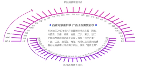 基于美妆用户地图,浙闽渝吉辽藏滇及内蒙护肤消费增速排名高于彩妆,更重“自然之美”;津冀青黑赣桂彩妆消费增速排名高于护肤,更重“精致之美”。