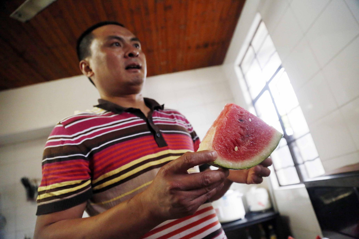 如何检验西瓜的品质?朱林杰全凭“指”上功夫,敲一敲、弹一弹,就能对西瓜水分足不足、糖分高不高、瓜籽多不多有个八九不离十的判断。