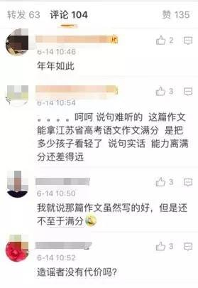 网友:我就说那篇作文虽然写的好,但是还不至于满分。