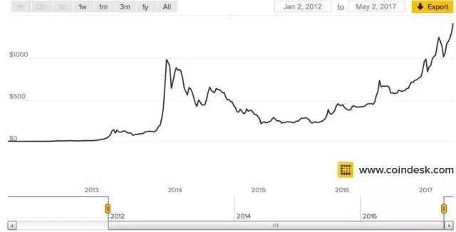 据悉,2013年年初,比特币仅为13美元,随后在中国买家的带动下攻破了1000美元大关,11月29日达到1242美元,并一度接近一盎司黄金的价格。