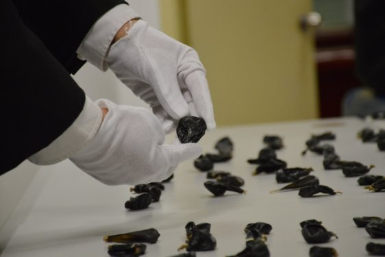 图为:厦门海关查获443枚网纹蟒蛇干胆 许可/摄