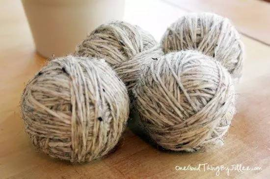 准备几个洗衣球,家里没有洗衣球的可以用网球或者毛线球代替。按照下列步骤,扎几个毛线球备用,毛球尽量扎紧一些~