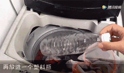 准备一个塑料瓶,一同放入洗衣袋中封好袋口,将洗衣袋放入洗衣机中,开启清洗键即可。注意,不是把塑料瓶直接放进洗衣机!