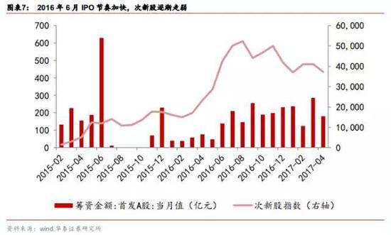 相反,如果IPO节奏超出某一个阙值(如2016年6月份后),一方面次新股供给大幅增加,导致次新股迅速丧失稀缺性,另一方面,新股涨停板打开时间提前,打压较早上市次新股的估值水平。