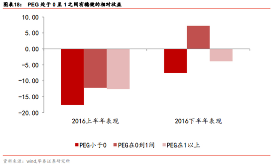 PEG是刻度估值和业绩匹配情况的一个很好的指标,从我们的回测情况来看,PEG处于0至1之间的次新股股价有稳健的相对收益。