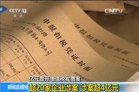 日前,国家税务总局、公安部联合督办,破获一起医药行业虚开增值税发票的案件。犯罪嫌疑人为达到少缴税款的目的,在无货交易的情况下,利用上下游超20家企业大量虚开增值税专用发票,涉案金额超过4亿元。
