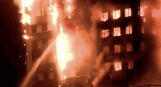 火灾发生时,熊熊大火将整个大楼吞噬,漆黑的夜空火光冲天。大火一直持续了十几个小时,目前整栋大楼已经被烧成空壳。