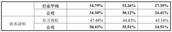 在防腐涂料领域,公司与可比上市公司差异不大,在防水涂料领域,则因各自产品应用市场不同存在较大差异。总体来看,公司毛利率与同行业可比公司相比,不存在重大异常。