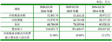 2013年至2016年,吉华集团应收账款余额33,145.76万元、26,972.12万元、33,410.28万元、32,801.74万元,应收票据32,826.05万元、38,557.19万元、44,745.68万元、35,978.76万元。